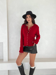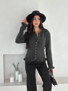 2025新款粉色单排扣圆领针织衫女复古纯色慵懒风休闲百搭开衫毛衣