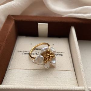 甜美珍珠花朵开口戒指精致小众时尚气质食指戒轻奢高级感指环手饰