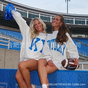 跨境爆款新品定 制大学队反穿式假领立领烫画工艺运动衫