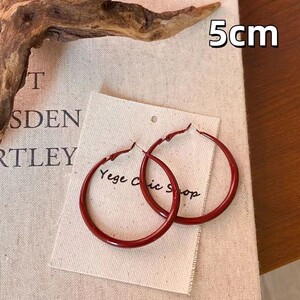 复古安可拉酒红色耳圈耳环气质高级感大气素圈耳饰女百搭耳坠