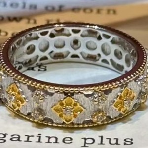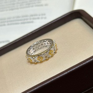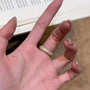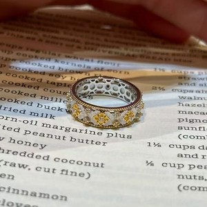 布家风拉丝工艺分色电镀小黄花戒指S925纯银拉丝工艺锻面轻奢高级