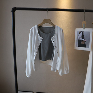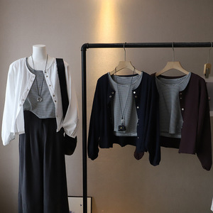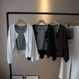[比正]2025秋季新款韩版时尚休闲两件套条纹背心+长袖外套女4670