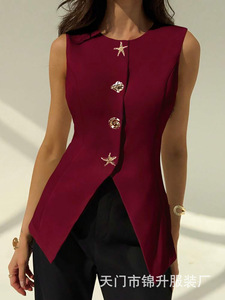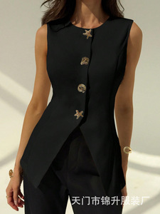 跨境外贸气质女装欧美时尚无袖收腰显瘦百搭纽扣女士马甲