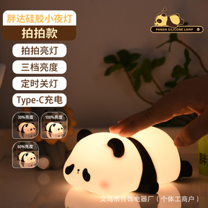 熊猫胖达花花小夜灯硅胶柔光灯卧室伴睡眠台灯儿童玩具礼物