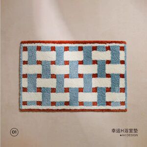 赛波斯中古风浴室地垫仿羊绒吸水防滑几何格子地垫卫生间吸水垫子