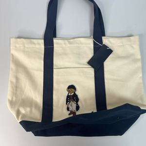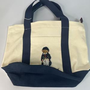 乐天日韩POLO织带款黑色风衣刺绣熊帆布包购物袋单肩手提袋托特包