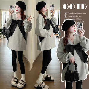 2025秋冬新品气质设计感韩版时尚宽松蝴蝶结空气棉卫衣