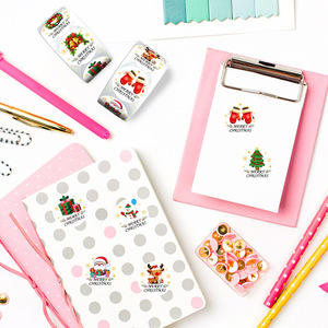 500张/卷圣诞节卷卷贴儿童节日贴纸礼物包装信封封口卡通DIY贴画