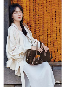 【文淇同款】Songmont山下有松循迹胎牛皮保龄球包波士顿手提包