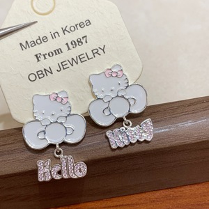 时尚气质滴油字母猫咪耳环卡通可爱百搭精致耳钉新款爆款简约耳饰