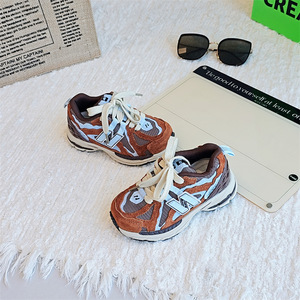 55085童鞋2025秋潮牌磨砂真皮男女童休闲鞋儿童老爹鞋运动跑步鞋