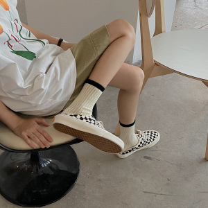 黑边镂空网眼中筒袜夏季薄款网红袜子女日系百搭纯色棉袜透气吸汗