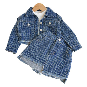 春秋新款学院风长袖女童港风小香风牛仔外套短裙两件套GC0219