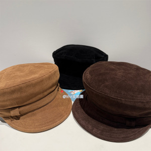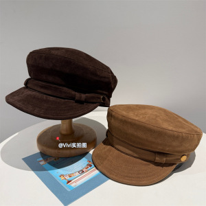 咖色学院风时尚复古鸭舌帽女秋冬麂皮绒韩版简约百搭平顶报童帽男
