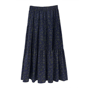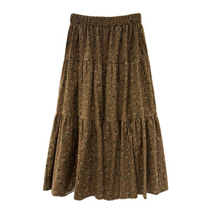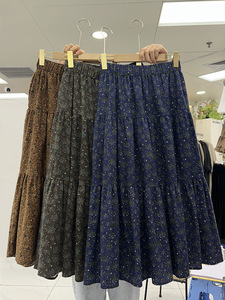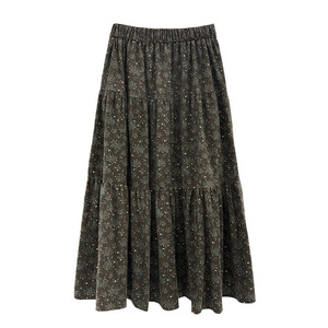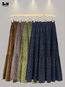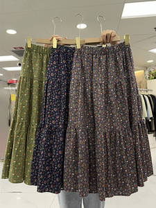 秋季新款复古印花磨毛半身裙2025新款有口袋中长款松紧腰a字半裙
