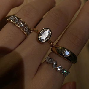 s925纯银超闪锆石椭圆轻奢小众精致戒指女高级感爱心几何时尚个性