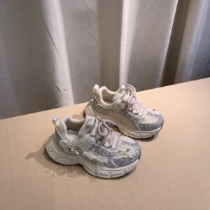 女童运动鞋2025秋季新款低帮花朵水晶休闲系女孩子时尚百搭老爹鞋