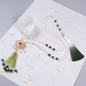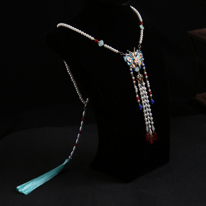 中国风长款仿珍珠背云汉服马面裙长流苏古装旗袍配饰古风璎珞项链
