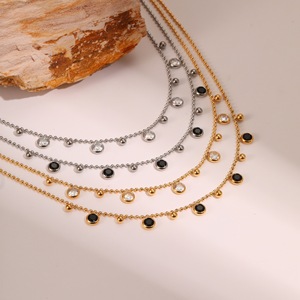 跨境欧美流行ins锆石流苏不锈钢项链镀18K金轻奢高级感项饰品批发