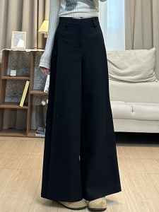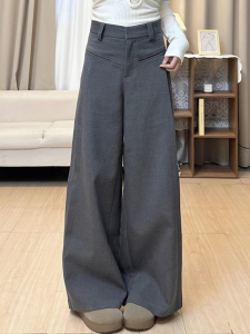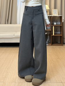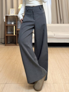 感灰色阔腿西装裤女夏季新款高腰垂感职业西裤直筒裤拖地裤子2025