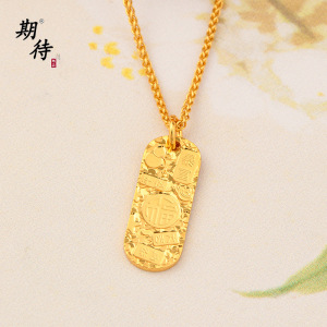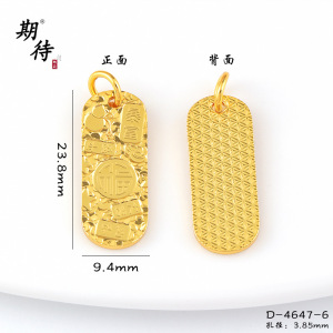 沙金吊坠铜镀金久不掉色双面碎冰冰福牌项链吊坠女轻奢高级感吊坠