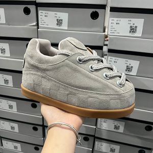 王嘉尔同款胖丁真皮面包鞋女2025秋休闲运动厚底增高阿甘板鞋大码
