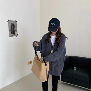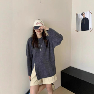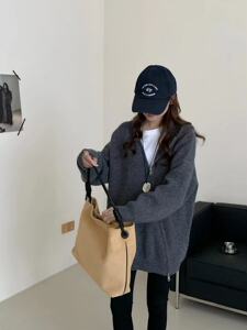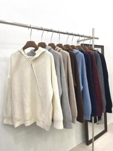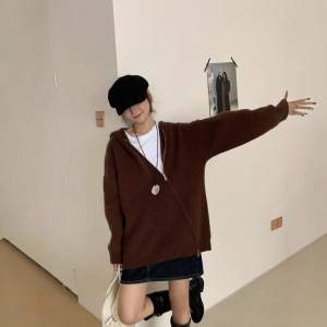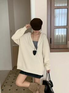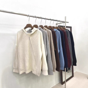 跨境新款纯色简约个性斜开双拉链设计感连帽针织开衫大码厚实外套