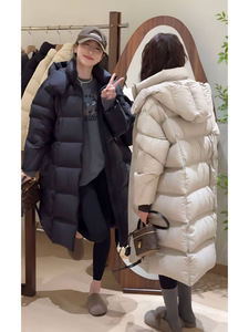 ~爆款连帽鹅绒服2025年女冬韩系加厚宽松过膝长款白鹅绒保暖外套