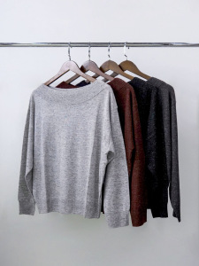 秋季新款超细羊毛一字领长袖上衣宽松显瘦露肩毛衣气质慵懒针织衫