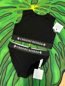 25克罗新款瑜伽运动装十字花梵文织带收腰背心短裤套装遮副乳辣妹