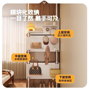 顶天立地洞洞板门后置物架超薄免打孔入户玄关隔断一体金属收纳架