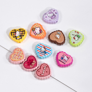 新款可爱KT猫爱心印花格纹亚克力diy串珠挂饰钥匙扣配件挂件批发