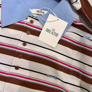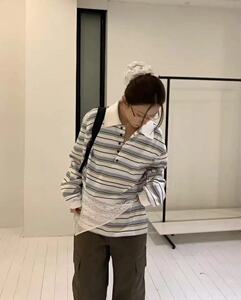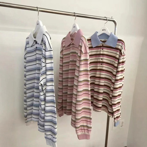 韩国小众 25秋季新款 复古拼色条纹polo领字母刺绣翻领长袖T恤女