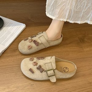 复古厚底博肯鞋2025年新款百搭休闲夏外穿拖鞋女懒人度假包头半拖