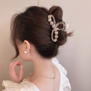 优雅小香风山茶花珠珠抓夹大号发量多女后脑勺高端盘发鲨鱼夹发夹