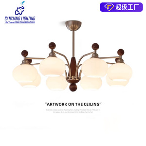法式中古风客厅灯美式复古侘寂风大厅吊灯创意设计师实木中山灯具