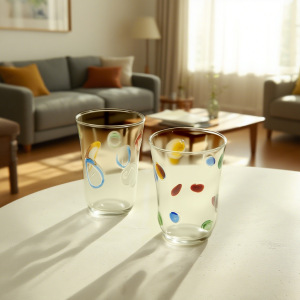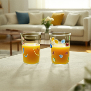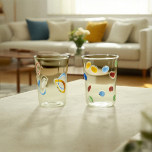 点圈杯可爱简约高硼硅玻璃水杯家用果汁冷饮杯玻璃杯无把手杯爆款
