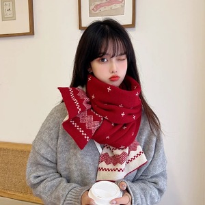 围巾女士冬季保暖圣诞节跨年氛围感新年红高级针织学生情侣男围脖