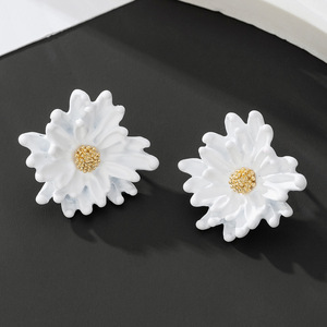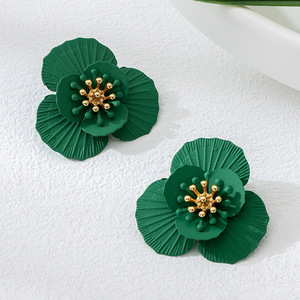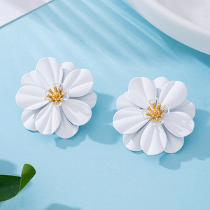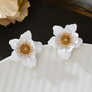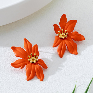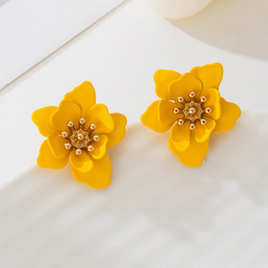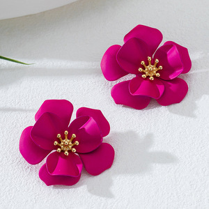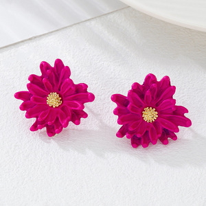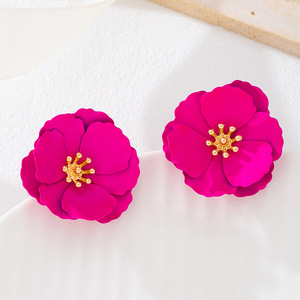 欧美跨境森系甜美彩色喷漆花朵耳环气质简约多层花卉耳钉耳饰品女