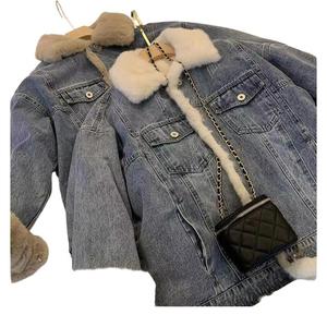 牛仔外套女秋冬天新款复古羊羔毛休闲宽松bf加绒加厚休闲派克服女