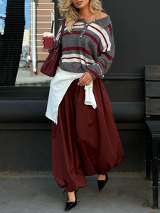 秋冬气质条纹毛衣polo领上衣女跨境时尚新款保暖舒适亲肤出街百搭