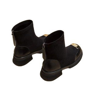厚底粗跟马丁靴2025秋冬新款小个子增高拼接短筒女靴弹力瘦瘦靴