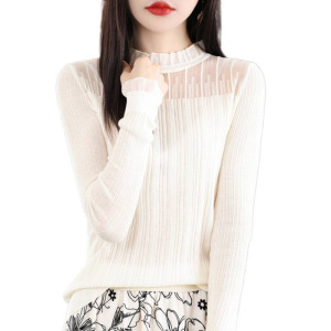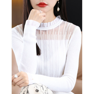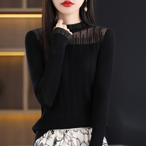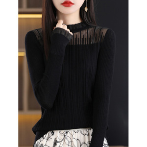 法式别致洋气小上衣蕾丝打底衫女内搭半高领毛衣长袖针织衫