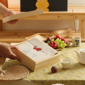 6格天地盖空木盒 六格外径约26.4x18x7cm+随机手绘兔子封套+红色蜡绳+硫酸纸+随机红色火