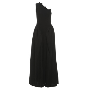 跨境欧美风2025秋季新款女装宽松单肩设计立体花朵装饰长裙连衣裙