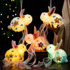 中秋节兔子灯笼diy手工材料包儿童手提发光古风玉兔花灯夜市摆摊