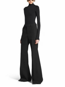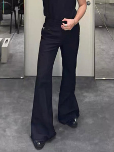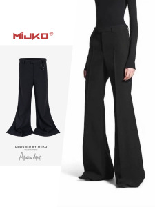 MIJKO男装女立体剪裁Flared Pants微喇西裤男女同款阔脚黑色长裤