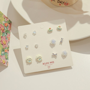 2025新款卡通可爱甜美耳钉套装女少女心学生耳环小巧百搭耳饰批发