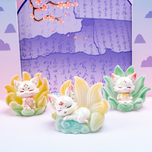 山海灵狐传盲盒树脂工艺品摆件九尾狐盲盒办公桌面装饰品手办批发