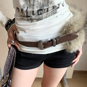 美式复古铆钉毛毛棕色腰带女小众设计感配裙子牛仔裤带y2k皮带潮